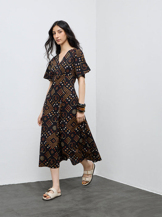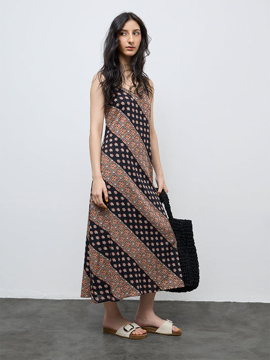 Bombay Paisley Black Printed Cotton A-Line Dress