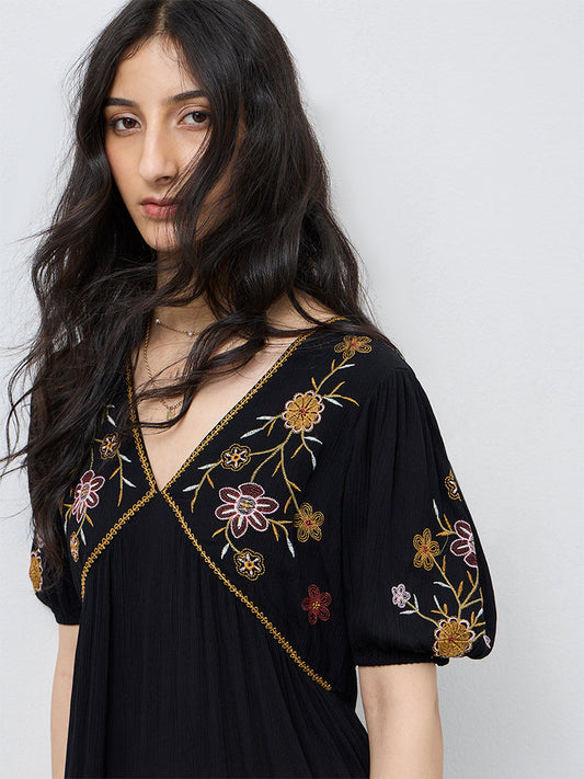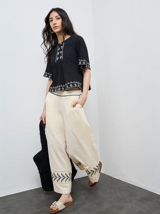 Bombay Paisley Black Embroidered Cotton Top